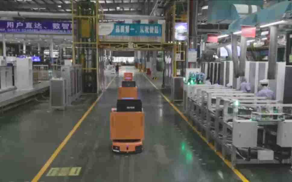 为车载冰箱物流配送打造的智能解决方案,,,,包含产中物流通过潜伏举升AMR搬运至线边,,产后成品物流智能仓储,,流程包含产中物流智能齐套入库,,,,线边安灯叫料AMR智能配送至线边,,,成品入库、、、出库,,,通过无人堆高车机器人,,智能仓储管理替代人工作业管理,,,,实现更高存储、、、、更高效率、、、、更具柔性化的解决方案。。。